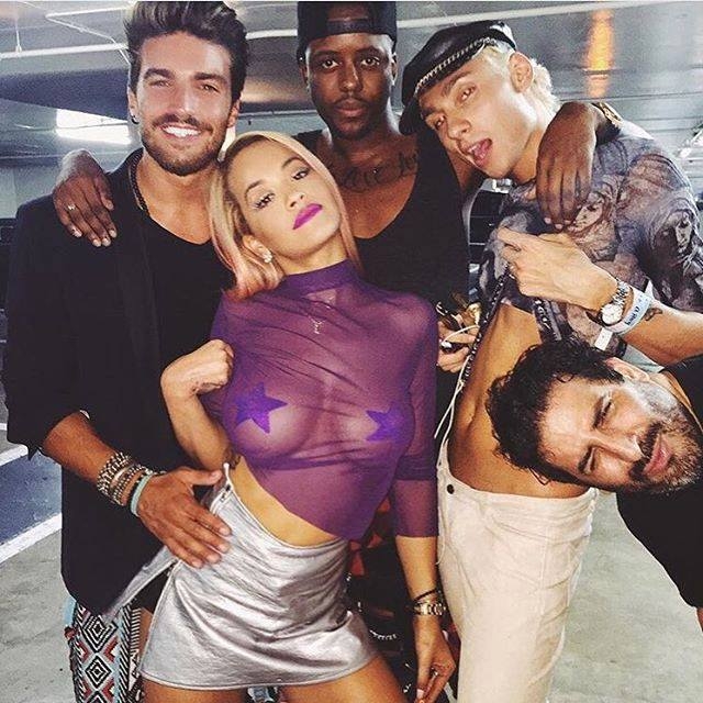 리타 오라는 과감한 시스루 탑과 은색 미니 스커트 차림을 했다. 가슴에는 별모양의 스티커만 붙인 채 사실상 알몸을 연출했다.