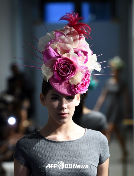 “머리 위에 핀 꽃...모자 패션”