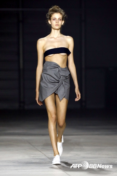 “띠로만 가슴 가린 패션도 패션...”