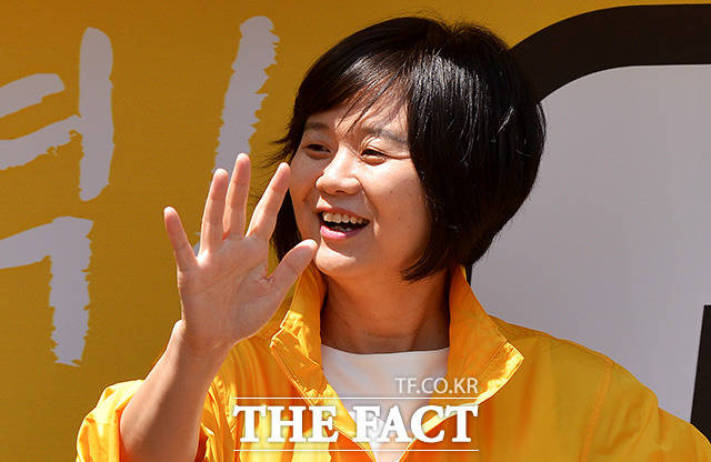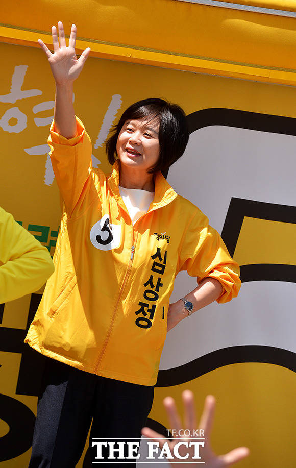심상정 정의당 대선후보가 1일 오후 서울 종로구 연건동 대학로에서 유세를 앞둔 가운데 이정미 의원이 홍보 댄스를 펼치고 있다.