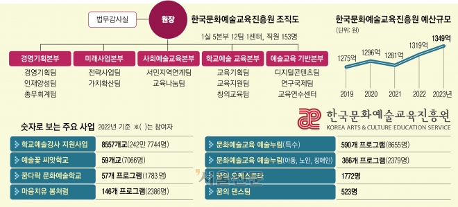 한국문화예술교육진흥원(교육진흥원)은 ‘한국문화예술교육진흥원 설립 및 문화예술교육지원법’에 따라 2005년 설립한 문화체육관광부 산하 공공기관이다. 모든 국민이 학교뿐 아니라 전 생애에 걸쳐 양질의 문화예술교육을 누릴 수 있도록 지원하는 게 기관의 임무다.