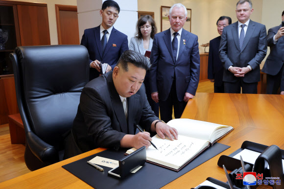 김 위원장은 공장 방명록에 “로씨야 항공 기술의 급진하는 발전상과 거대한 축력을 체감하며”라고 적었다.
