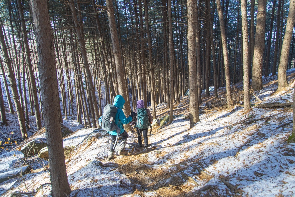검단산은 하남시를 대표하는 명산이다. 정상으로 향하는 등산로는 여러 개가 있는데 그중에 현충탑 등산로는 비교적 완만한 코스로 이루어져 있으며 주차장과도 가까워 겨울 산행으로 부담이 적다. 눈 오는 날, 가볍게 오르기 좋은 코스다.
