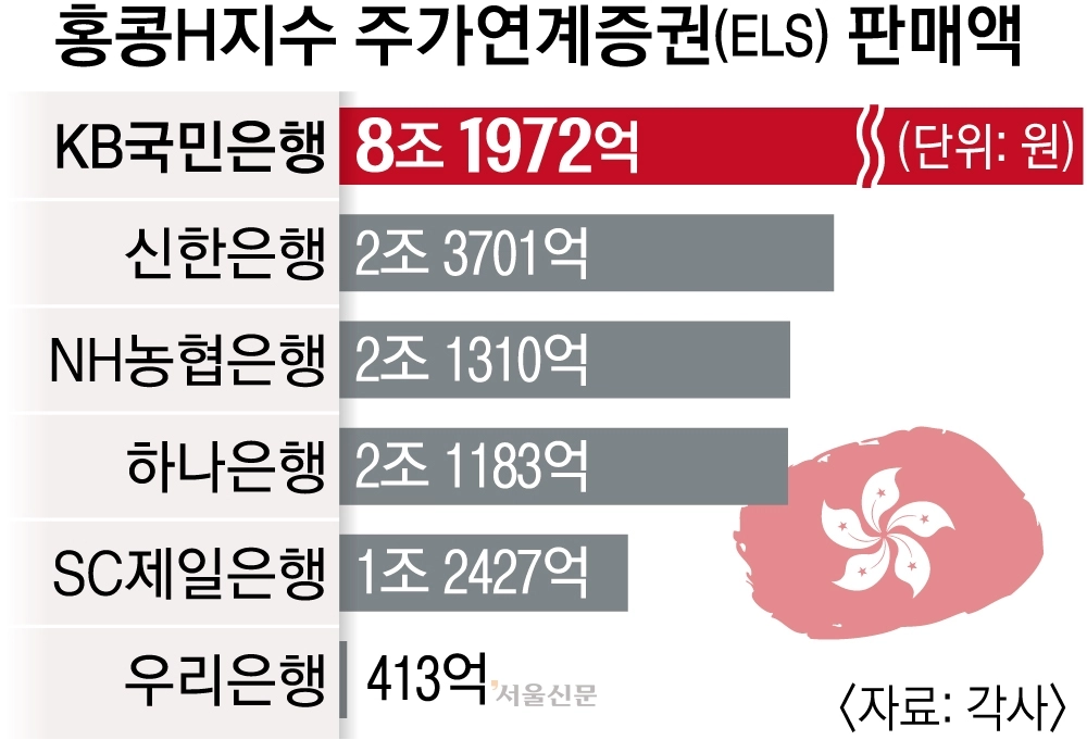 은행권이 홍콩 H지수 주가연계증권(ELS) 불완전판매와 관련해 약 2조원의 과징금을 사전 통보받으며 자본 건전성에 빨간불이 켜졌다.