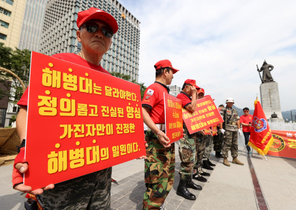 [포토] ‘채 상병 순직’ 공정수사 촉구하는 해병대 선배들