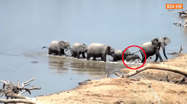 지난 20일 유튜브 ‘BZA-VID’ 채널에 게재된 영상에는 물가에서 목을 축이는 코끼리 가족의 모습이 담겨 있습니다. 무리 중 아기 코끼리를 발견한 악어들이 코끼리떼 주위로 모여들기 시작합니다.