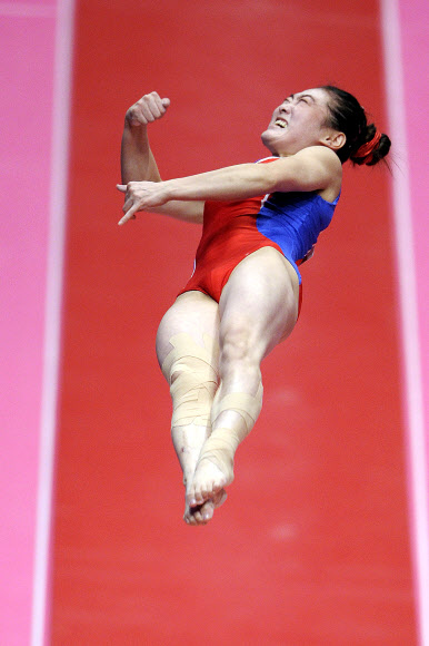 2008년 베이징 올림픽 도마 금메달리스트이자 지난해 난닝 세계선수권대회에서 도마의 ‘별’로 빛난 홍은정은 이로써 아쉽게 도마 2연패에 실패했다.
